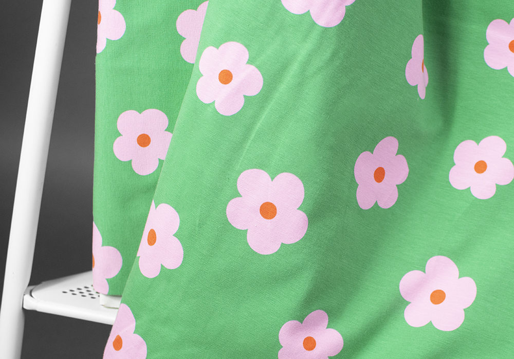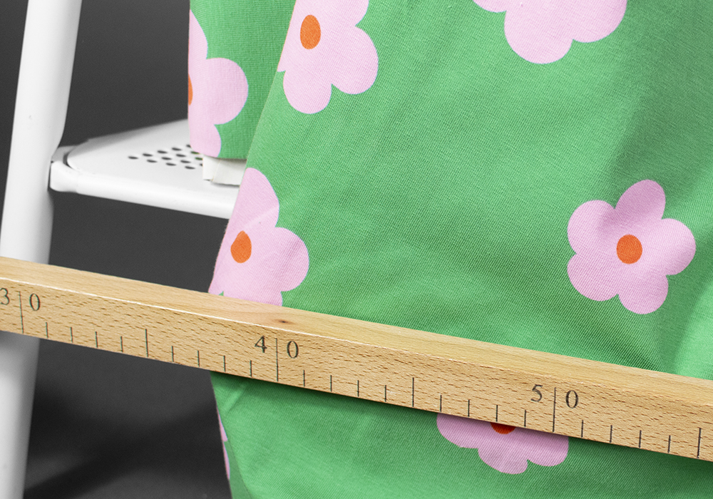 Jersey (trikå) – Rosa blommor – Grön